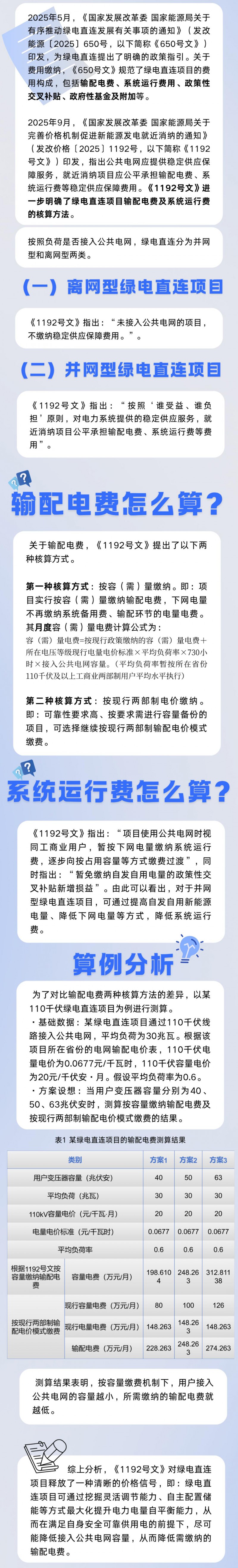 该案例以平均负荷30MW的110千伏的绿电直连项目为例,分别计算了1192号文下、现行两部制下两种输配电费缴纳情况。