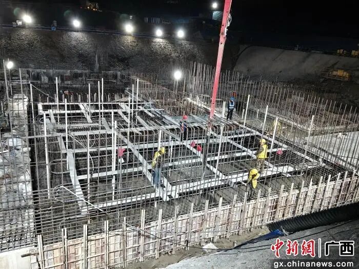 西津泵站夜间浇筑混凝土现场。陈雷 摄