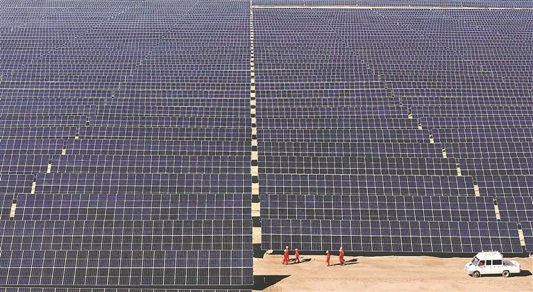 来到110千伏东湖光伏一电站,26万余面蓝色光伏板均匀铺开,在阳光照耀下熠熠生辉;现场运维人员正在对光伏组件、逆变升压设施进行例行巡检。这个电站是集团公司首个源网荷储项目,也是新疆首个建成投运的源网荷储一体化项目,2022年底正式并网发电,截至目前累计发电4.65亿千瓦时,减排二氧化碳36.94万吨,绿电自发自用占比稳居集团公司第一。“我们将持续实施电源调试运维、运行方式调整等措施,最大限度提升清洁能源替代,满足油田及周边储气库群、电气化改造等新增负荷的绿电消纳需求。”电站运行技术员李和兴说。