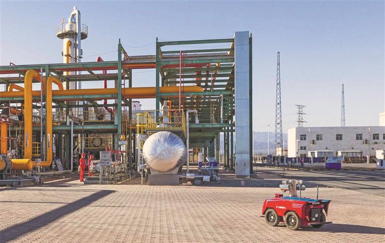 智能巡检机器人在温吉桑储气库群集注站巡检。